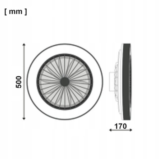 - ✅Wymiary lampy: Ø500 x 170 mm