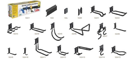 Zestaw 9 ściennych haków garażowych - Goliat SGK