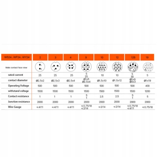 Złącze lotnicze męski wtyk żeński do oprzyrządowania 2,3,4,9,10,12,19 Pin WS24 19 męski łeb