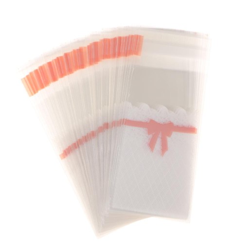Самоклеящиеся целлофановые пакеты S Розовый бантик