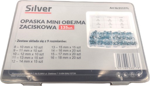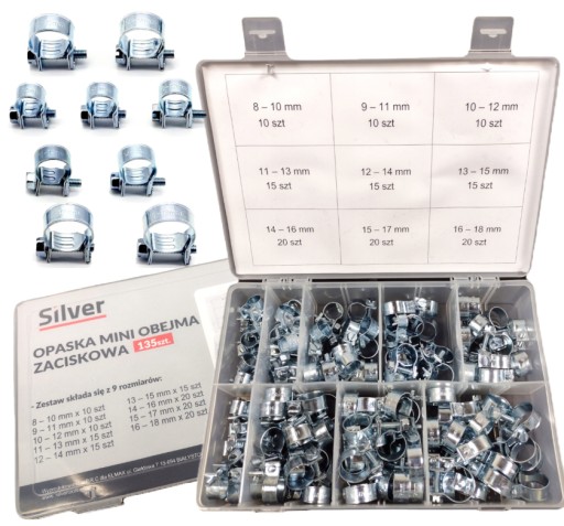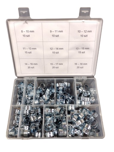 ✅ Zestaw opasek obejm stalowych w najpopularniejszych rozmiarach w praktycznym opakowaniu.