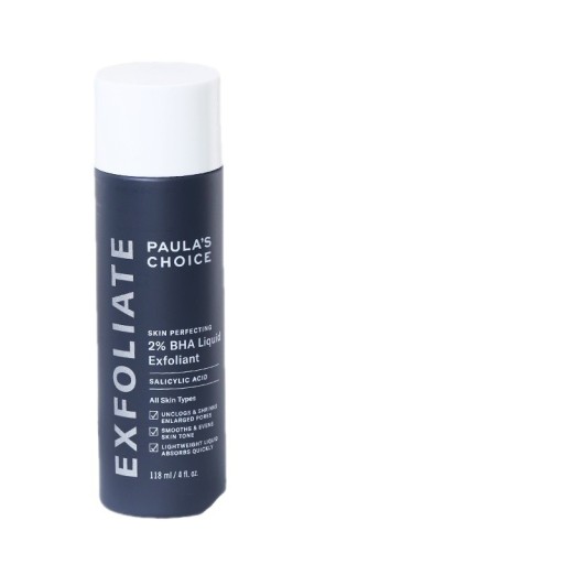 Paula's Choice - Skin Perfecting - 2% BHA Liquid Exfoliant - peeling kwasowy zawierający kwas salicylowy w najwyższym dopuszczalnym stężeniu - 2%. Kwas salicylowy to beta-hydroksykwas, który rozpuszcza się w tłuszczach. Jest to niezwykle ważne, ponieważ dzięki takiej właściwości może przenikać przez warstwę lipidową skóry i  oczyszczać zaczopowane ujścia gruczołów łojowych ("pory"), zmniejszając ich widoczność. Dodatkowo w składzie znajdziemy ekstrakt z liści zielonej herbaty, który działa ściągająco, przeciwzapalnie i tonizująco na skórę. Kosmetyk posiada pH wahające się między 3,2 a 3,8.