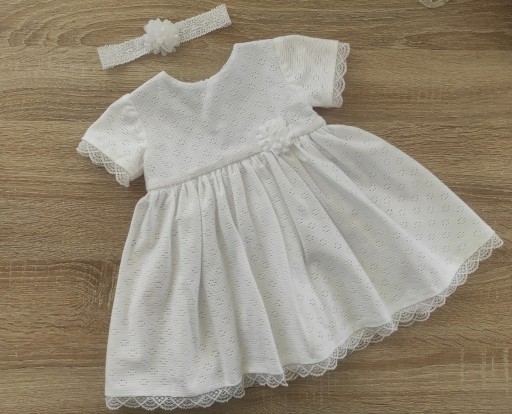 KELLO - Платье + крестильная повязка 62 см, БЕЛЫЙ ажурный