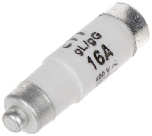Prąd znamionowy: 16 A Napięcie znamionowe: 250 V DC, 400 V AC Charakterystyka bezpiecznika: gL/gG Gniazdo bezpiecznika: E14 Typ: D0 Rozmiar: D01 Znamionowa zwarciowa zdolność łączeniowa: 50000 A AC, 8000 A DC Wybrane cechy: