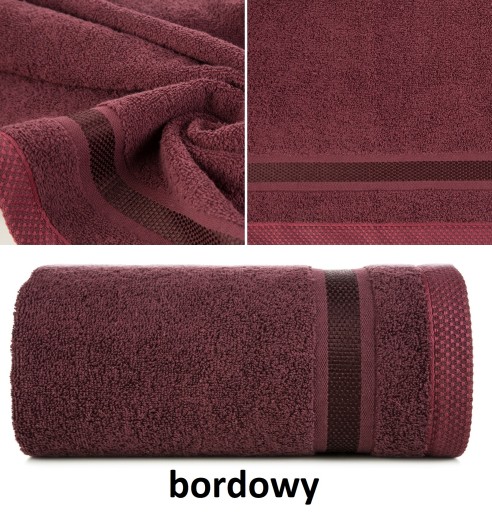 - Poznaj elegancki, klasyczny i ponadczasowy model ręcznika, który z łatwością dopasujesz do każdej łazienki. Jednobarwny ręcznik z miękkiej i chłonnej tkaniny bawełnianej o splocie frotte zdobiony kolorową bordiurą w stylu fastrygi. Łatwy w praniu, nie farbuje. Niezwykła jakość bawełny użytej do jego produkcji oraz wysoka gramatura sprawiają, że ręcznik jest puszysty i niezwykle miękki i przyjemny w kontakcie ze skórą, dzięki czemu szybko wchłania wodę, delikatnie osuszając ciało po kąpieli. Bogata kolekcja składająca się z wielu kolorów w dwóch rozmiarach daje możliwość komponowania zestawów dostosowanych do potrzeb każdego z domowników.