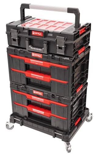 Platforma Transportowa z łatwością pozwala manewrować po płaskich powierzchniach 4 koła skrętne, każdy z hamulcem 3 poliamidowe konektory pozwalające na połączenie z pozostałymi modułami sytemu ONE. Z tyłu wygodny stopień do manewrowania Dla ułatwienia pracy, platforma posiada dedykowane miejsce na wiadro oraz 4 punkty uchwytów montażowych Maksymalne obciążenie platformy to 120 kg. RED ULTRA HD to specjalna edycja produktów Qbrick System ONE stworzona z ultra-wytrzymałego tworzywa, które cechuje nadzwyczajna odporność na uszkodzenia mechaniczne Przeprowadzone testy udarnościowe potwierdzają jej nadzwyczajną wytrzymałość, również w warunkach poniżej 0 °C.