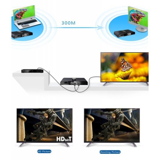System przekazu audio-video o zasięgu 300 m Obsługiwana rozdzielczość: 1920 x 1080 Możliwość pracy z kilkoma odbiornikami jednocześnie Transmisja danych odbywa się poprzez połączenie z siecią energetyczną