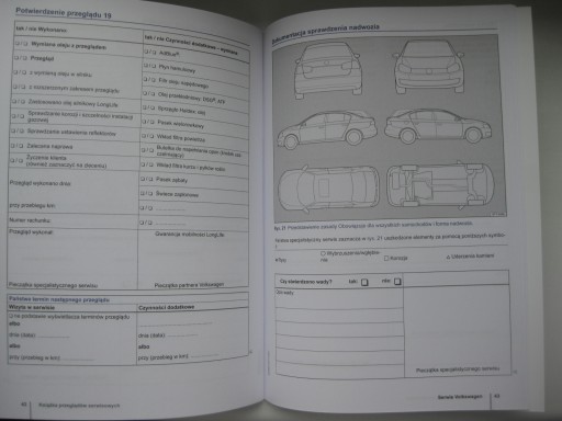 Polska książka serwisowa (przeglądów serwisowych) do samochodów