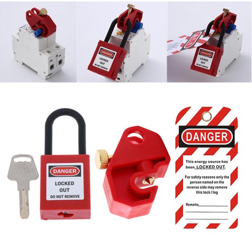 2x3 szt. Zestaw blokady wyłącznika elektrycznego Zestaw urządzeń zabezpieczających czerwony 01