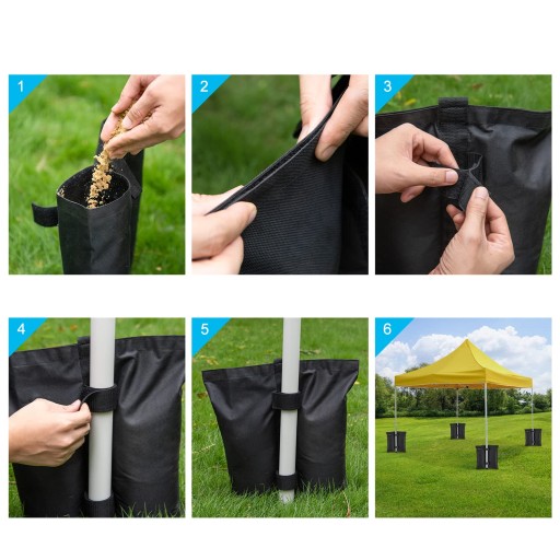 ✅Zestaw 4 worków obciążeniowych: Oszczędność miejsca i wydajność, kompaktowe składanie bez napełniania i łatwe przechowywanie. Pasują do prawie wszystkich standardowych altan i namiotów, idealne do użytku na zewnątrz i wewnątrz.