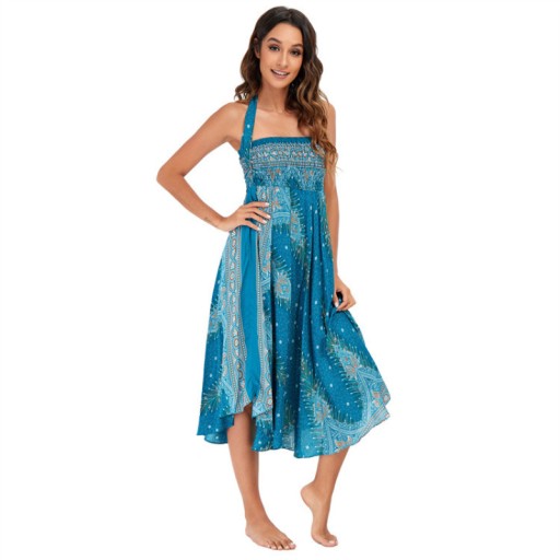 ✅Letnia spódnica Beach Boho Dress Elastyczna wysoka talia Casual Plus Size Spódnica Sznurowana sukienka z etnicznym nadrukiem