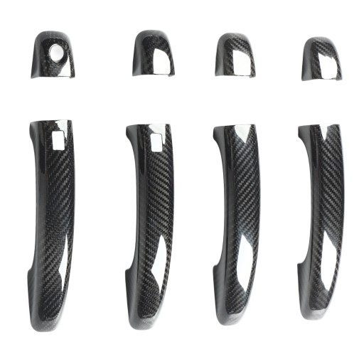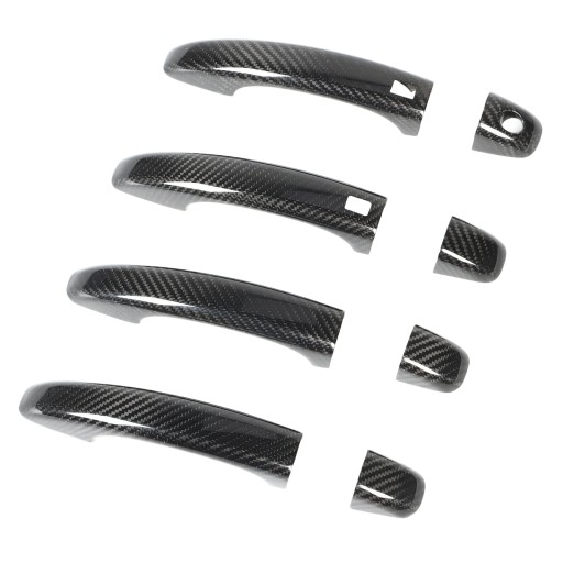 2. Włókno węglowe: Naklejka na klamkę drzwi wykonana jest z suchego włókna węglowego, które ma wyraźną teksturę i gładką powierzchnię, zapewnia samochodowi dynamiczną i sportową atmosferę.