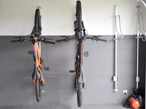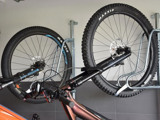 - wyposażenie wieszaka w "gniazda" na tylne koła zapobiegają brudzeniu ścian i stabilizują rower