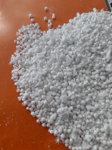 Przedmiotem aukcji jest 200 litrów regranulatu z domieszką styroduru xps - kulek o regularnych i nieregularnych kształtach.