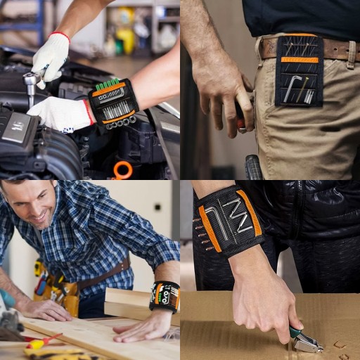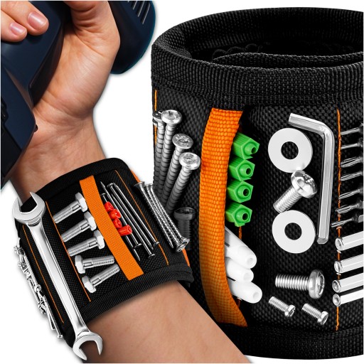 Niezawodna opaska magnetyczna na nadgarstek służy do przyczepiania narzędzi i akcesoriów, takich jak klucze, wiertła, śruby, nakrętki, itp.