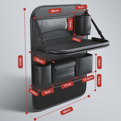 [2 w 1]: Praktyczny organizer na tylne siedzenie samochodu ze składanym uchwytem, który może służyć jako stół jadalny lub uchwyt na tablet, zapewniając wygodną podróż samochodem.
