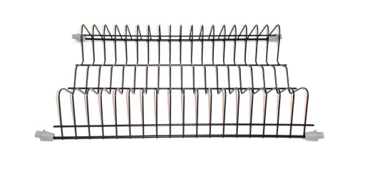 Ociekarka posiada dwie półki wykonane ze stali malowane proszkowo na kolor antracytowy/ grafitowy oraz jednej plastikowej tacki.