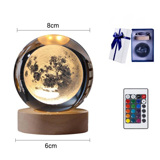 🌌SZKLANA KULA LAMPKA NOCNA NA BIURKO LED DEKORACYJNA 3D KSIĘŻYCA 8cm + PILOT