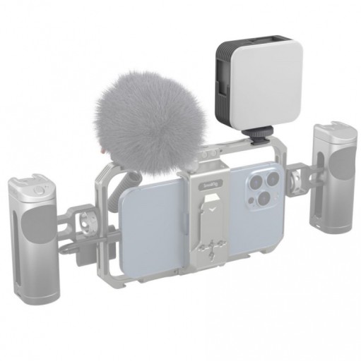 Lampę można podłączyć bezpośrednio do aparatu lub ramki do smartfona za pomocą wbudowanego mocowania typu zimna stopka.