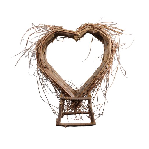Naturalne drewniane serce z patyków, idealne jako baza pod kompozycje dekoracyjne na taras, balkon i na cmentarz.