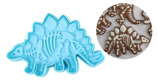 Forma wykonana z wysokiej jakości tworzywa sztucznego, zawiera wykrawacz i stemplem dinozaura.