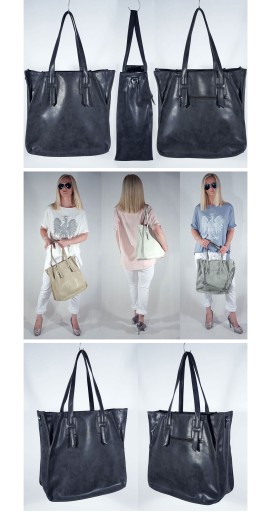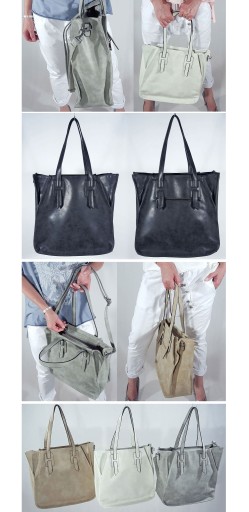 Torebka w kształcie sakwy, dużego worka, wykonana z wysokogatunkowej skórki ekologicznej.