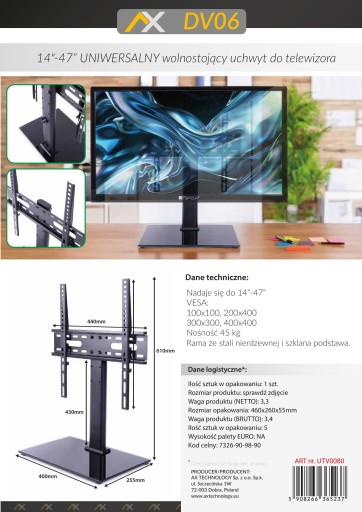 Uchwyt TELEWIZORA STOPKA LCD 14-47" AX DV06 WOLNOSTOJĄCY