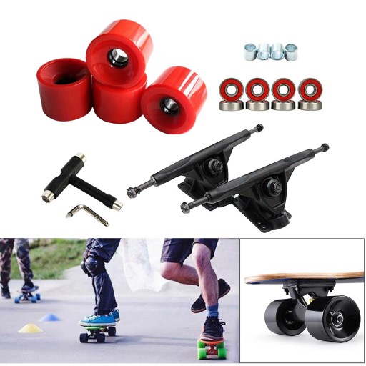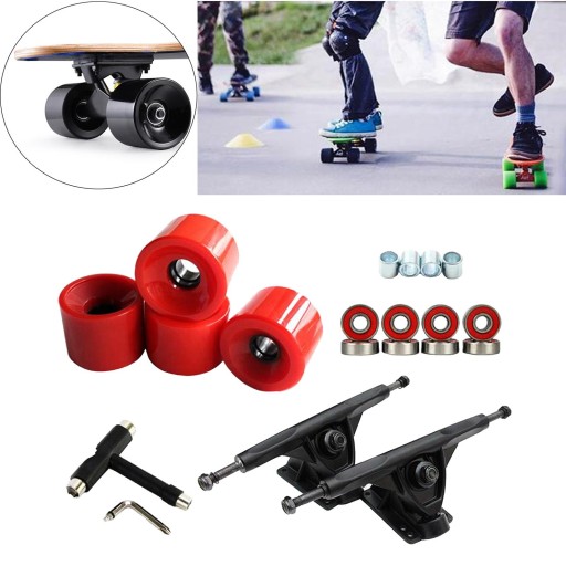 Deluxe zestaw części do deskorolki typu początkujących, w tym 2xTrucks, 4xwheels, 8xABEC-11 łożysk, 1x i 4x dystansery