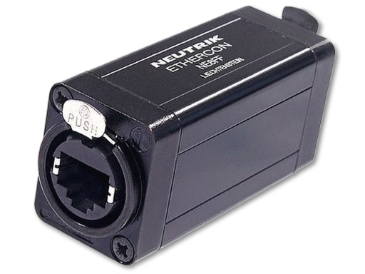 Neutrik NE8FF łączy w sobie jednocześnie zalety klasycznego łącznika RJ45 oraz zalety cieszącego się dużą popularnością łącznika ethercon. Solidna, metalowa obudowa gwarantuje bezpieczeństwo i stabilność połączenia, a system "push-pull" pozwala na łatwe podpięcie i odpięcie kabla.