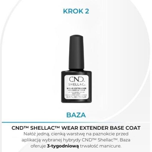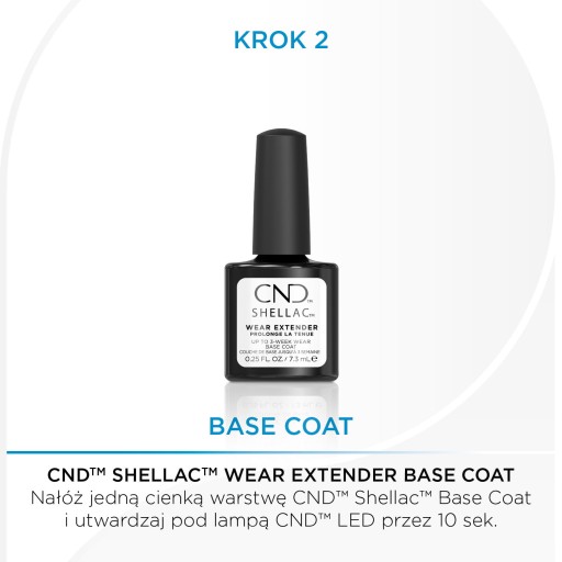 - Stylizacja utrzymuje się przez 14+ dni intensywnego użytkowania lub 21+ dni jeśli wybierzesz nową bazę CND Shellac Wear Extender Base Coat,