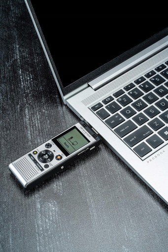 Dzięki wbudowanemu złączu USB możesz łatwo i wygodnie zapisywać swoje dane. Nagrania przenieś z dyktafonu na zewnętrzny dysk twardy lub wykorzystaj dyktafon jako dysk USB, by przenosić na nim dokumenty.
