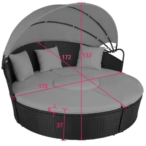 Wymiary całkowite (szer. x gł. x wys.): ok. 172 x 172 x 88 – 132 cm
