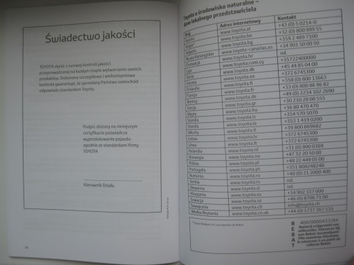 Polecam również oryginalne ETUI TOYOTA (na instrukcje, książki serwisowe itp) dostępne na innej mojej aukcji