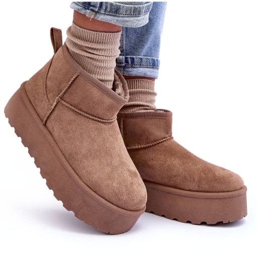 Zamszowe Śniegowce Na Platformie Ciemnobeżowe Corcoran - rozmiar 40