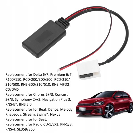 Funkcja:1. Montaż: Kabel wejściowy audio Bluetooth zastępuje RCD200 RCD210 RCD310 RNS300 RNS310 RNS510.