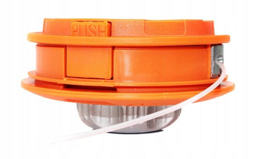 Głowica automatyczna, wysuwająca żyłkę po uderzeniu głowicą o ziemię. Mocne zaczepy pokrywy nie pozwalają na odczepianie się jej podczas pracy.