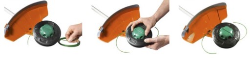 Dzięki systemowy Tap & Go wymiana żyłki nie wymaga rozbierania całej głowicy.