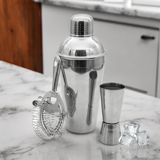 Zestaw barmański, wykonany z wysokiej jakości stali nierdzewnej. Nie zawiera szkodliwych substancji oraz nie zmienia smaku przygotowywanych napojów. W zestawie znajduje się Shaker, miarka barmańska o dwóch wymiarach oraz sitko barmańskie. Cały zestaw idealnie nadaje się na imprezach ale również jako pomysł na prezent. Z takim zestawem zaskoczysz wszystkich gości a impreza będzie niezapomniana oraz wyjątkowa.