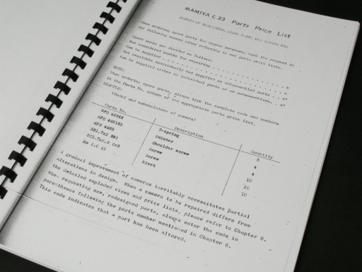 Ekstremalnie szczegółowy Parts Catalog - czyli serwisówka do aparatu Mamiya C33.