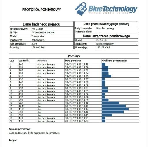 - Generuje raport z pomiaru w formacie PDF