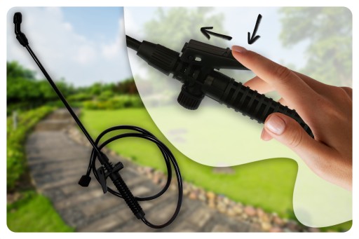 Wyposażony w długi wzmacniany wąż umożliwiający łatwo i wygodnie dosięgnąć nawet wyższych roślin, podczas gdy opryskiwacz ciśnieniowy będzie stał na ziemi lub na wózku.