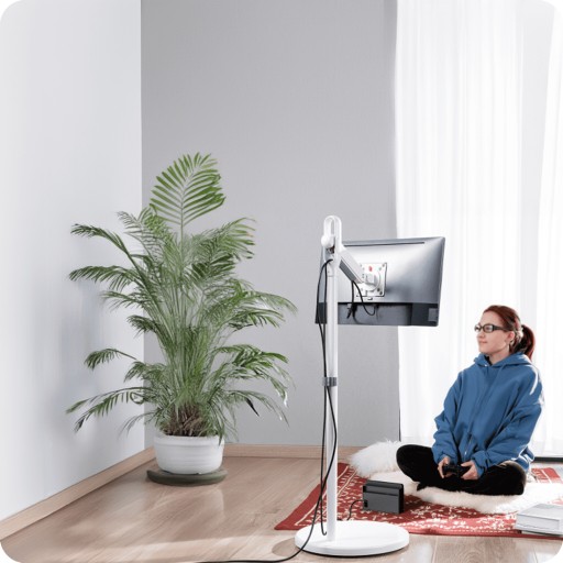 Uchwyt w łatwy sposób możesz przemieszczać po domu. Stopa uchwytu została wyposażona w kółka, dzięki którym szybko przemieścisz monitor w inne miejsce.