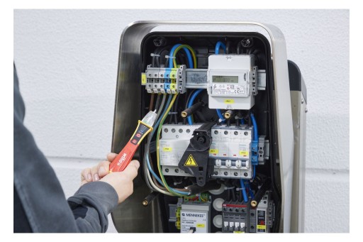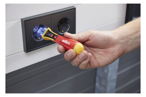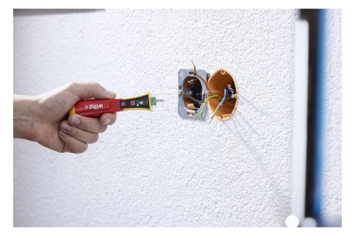 Saves time Fast voltage testing through non-contact measurement. Increases your efficiency Thanks to the internationally adapted measuring tip, it can be used for all sockets worldwide. Increases your efficiency Integrated bright LED flashlight. Increases your flexibility Voltage tester covers a large voltage range from 12 to 1,000 V AC. Application For detecting and locating live conductors, cable interruptions and breaks, blown fuses, defective lamps on light chains as well as individual strand detection. Standards CAT IV 1,000 VAC Before starting an electrical installation, electricians must ensure that the working environment is voltage-free. In order to test alternating electrical fields or to locate suspected sources of error, a voltage tester is required. An initial indication of whether there is no voltage is possible with the non-contact Wiha voltage tester thanks to optical and acoustic signals. After switching on, the permanently green LED indicates that it is operational. When testing the voltage, depending on the strength of the alternating electrical field, the LEDs light up from weak blue to orange to strong red. Two AAA batteries are required for use, which are included in the scope of delivery. If the device is not used for 4 minutes, it switches off automatically to save energy. An integrated LED flashlight enables measuring point illumination in dark environments and can be used as a flashlight by manually switching it on and off. Thanks to its handy size, the voltage tester with clip fits comfortably in any shirt or trouser pocket. Thanks to the internationally adapted measuring tip, the voltage tester is suitable for all socket variants worldwide. The single-pole voltage tester is subject to the EN 61010-1 IEC 61326 standard and is designed for CAT IV 1,000 VAC. For electrical applications Before and after each use, the voltage tester must be tested on a known voltage source to ensure functionality. EN 61010-1 IEC 61326 IP67