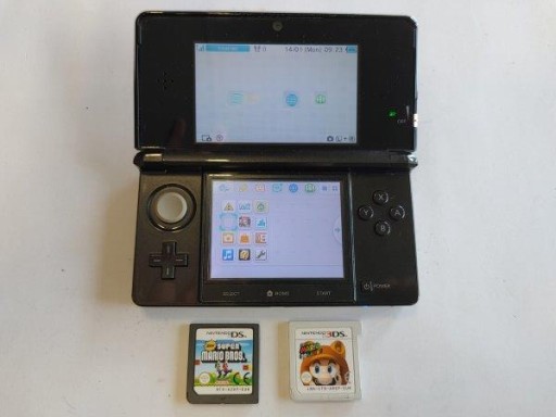 КОНСОЛЬ NINTENDO 3DS ЧЕРНЫЙ + КАРТА ПАМЯТИ + ОРГ ЗАРЯДКА + 2 ИГРЫ МАРИО