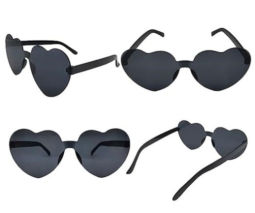 - Okulary przeciwsłoneczne, bez oprawek, w kształcie serca,