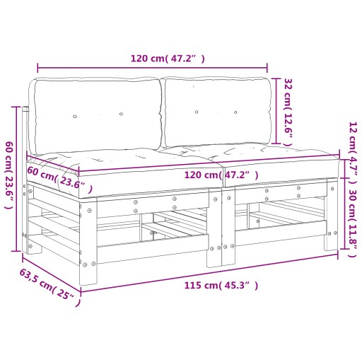 Центральные сиденья с подушками, 2 шт., массив сосны