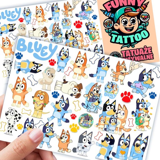 TATUAŻE DLA DZIECI ZMYWALNE TYMCZASOWE BLUEY WZORY JAKOŚĆ