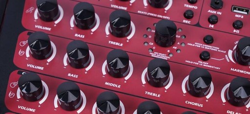 - Korekcja barw i efekty na pokładzie: Każdy podpięty instrument możesz dowolnie modulować za pomocą wbudowanych efektów Chorus, Delay i Reverb. Dodatkowo, swój dźwięk możesz podkreślać na różne sposoby, korzystając z gałek Bass, Middle, Treble. Każdy efekt możesz stosować oddzielnie dla danego instrumentu!