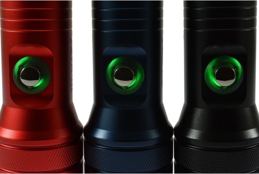Kompaktowy backup o różnych kolorach obudowy (czarna, czerwona, niebieska i różowa) z podświetlanym włącznikiem przyciskowym i o trzech poziomach mocy świecenia (1100lm/5000lm/250lm) oraz wyposażony w 3 dodatkowe funkcje świecenia: błysk co 1 sekundę, S.O.S oraz stroboskop.
