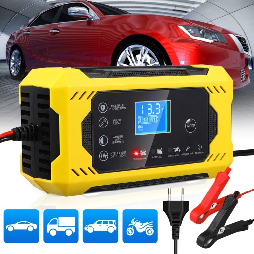 Szeroka kompatybilność: nadaje się do akumulatorów 12 V, nadaje się do ładowania wielu typów pojazdów, takich jak motocykle, samochody, pojazdy terenowe, suche akumulatory SUV, akumulatory wodne (baterie litowe są zabronione do ładowania), może być również używany do łodzi, quadów, kosiarka do trawy itp.